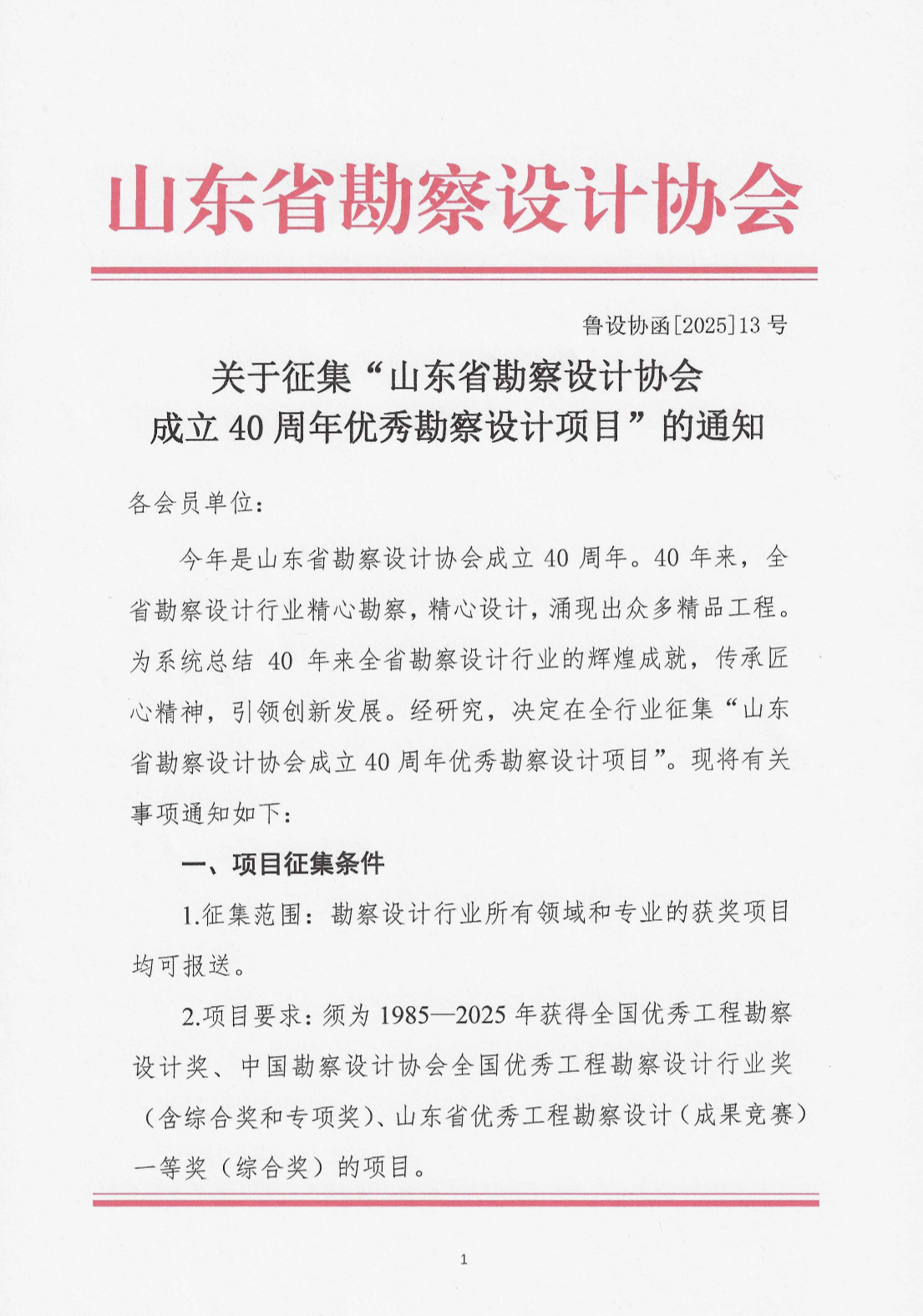 关于征集“山东省勘察设计协会成立40周年优秀勘察设计项目”的通知