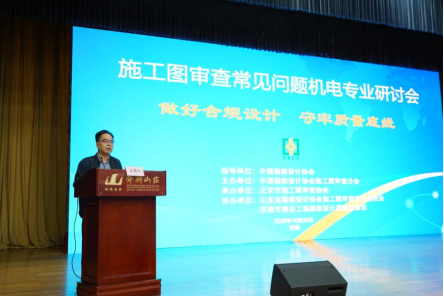 10月23日,中国勘察设计协会施工图审查分会(以下简称“中设协施工图审查分会”)在济南市组织召开了以“做好合规设计、守牢质量底线”为主题的施工图审查常见问题机电专业研讨会。中设协施工图审查分会会长贾抒、常务副会长刘宗宝、副会长陆明、姜学宜,山东省住房城乡建设厅勘察设计处副处长齐宬,济南市住房城乡建设局副局长张国颖,山东省勘察设计协会理事长顾国栋,济南市建设工程勘察设计质量监督站主任陈西梅等领导和嘉宾出席会议。来自全国各地的勘察设计与审查从业人员共计200余人参会。上午会议由陆明主持,下午的会议分三个专业研讨,分别由刘宗宝、陆明、姜学宜主持。