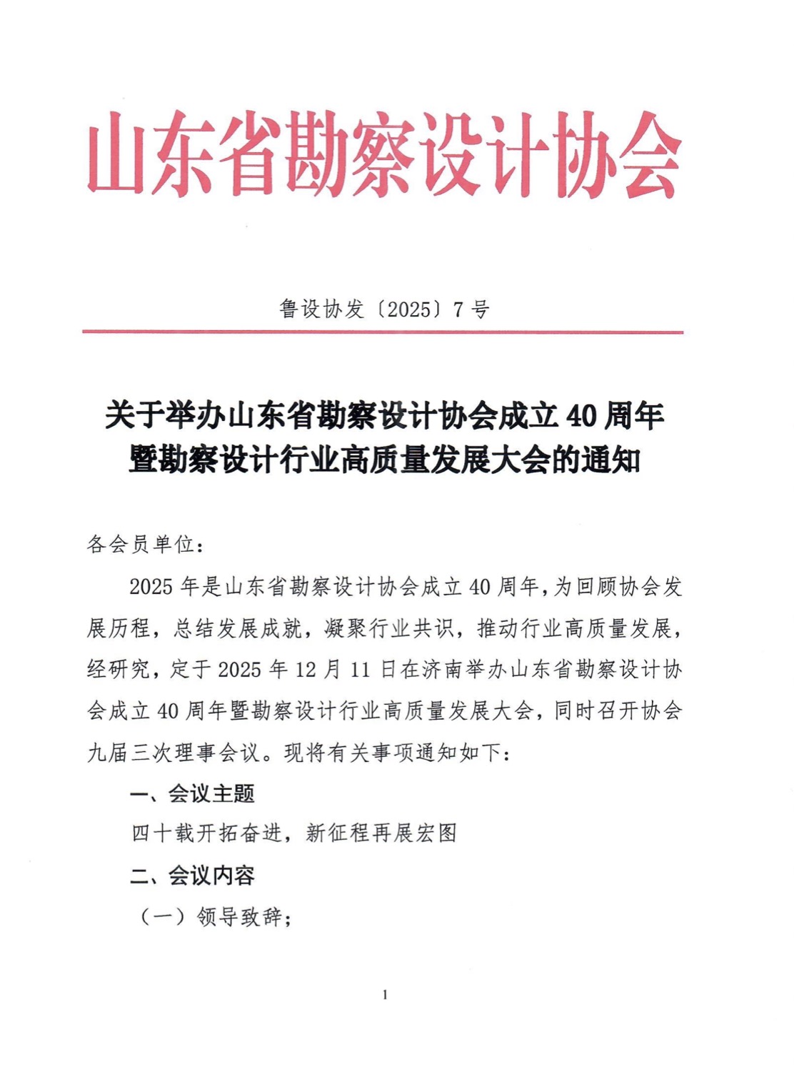附件:关于举办山东省勘察设计协会成立40周年 暨勘察设计行业高质量发展大会的通知