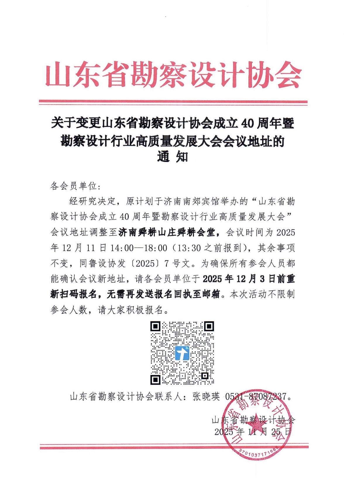附件:关于变更山东省勘察设计协会成立40周年暨勘察设计行业高质量发展大会会议地址的通知